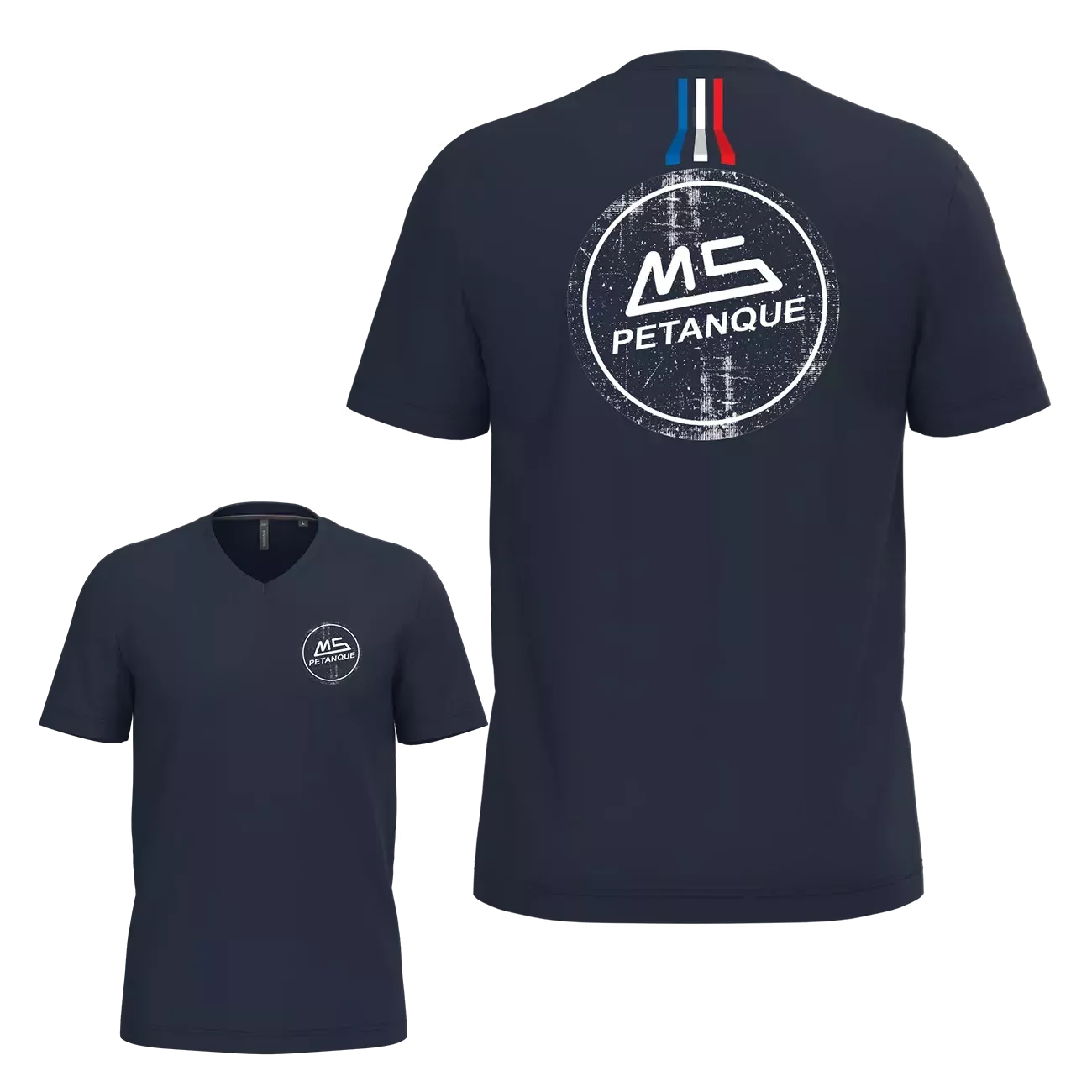 Tee-shirt bleu marine col V, à la fois simple et moderne.